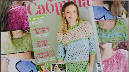Пуловеры и жакеты с ажурными узорами, яркие краски и нежные оттенки, сочетание трикотажа и денима в журнале Сабрина, 3 / 2023.