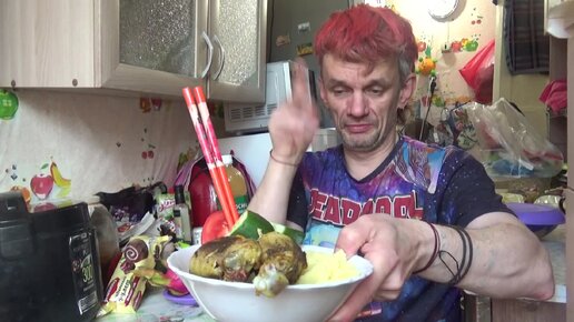 обжор мукбанг корейскийсок персиковый рулет яшкино пюрешка картофельнаяс куриной голенью огурцы помидоры детская лопша китайска яплод вье