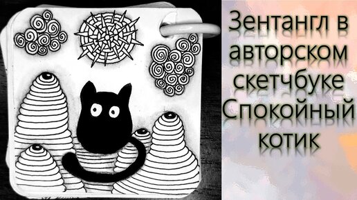 Зентангл в авторском скетчбуке Спокойный котик