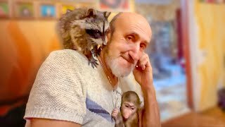 КОШМАР!!! Енот Тимошка ВОРУЕТ ЕДУ, кот Басик ОХОТИТСЯ на обезьянку Тома, Маня ревнует папу ко всем!
