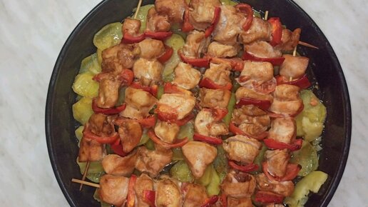 Как приготовить вкусные шашлыки из курицы в духовке.Куриный шашлык на шпажках с картошкой