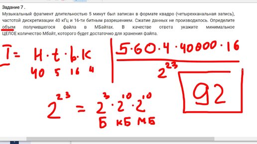 Стыдно, товарищи! В этой задаче ошиблись все ученики, а ведь она уровня "базовый", самая легкая в мире (ЕГЭ по инф-ке, кодирование звука)