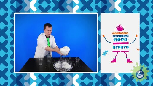 Профессор Николя готовит искусственный снег на телеканале Nickelodeon.