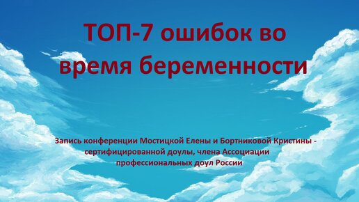 ТОП-7 ошибок во время беременности. Беседа с Бортниковой Кристиной, сертифицированной доулой, членом Ассоциации профессиональных доул России