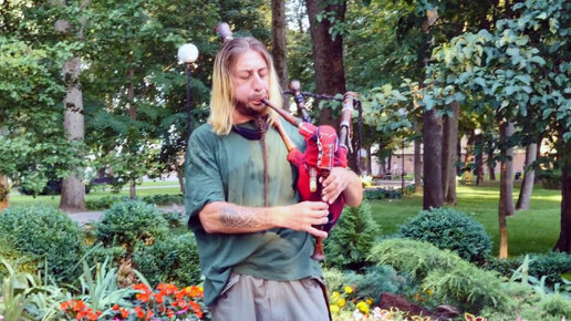 Красиво звучала волынка. Музыка волынки на улице, интересный волынщик.