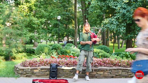 Красиво звучала волынка. Музыка волынки на улице, интересный волынщик.