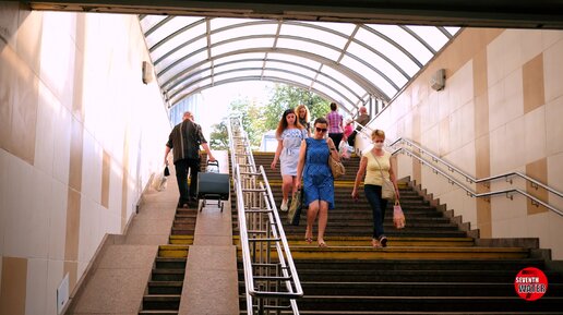 В подземном переходе. Уличные музыканты играют и поют в переходе.