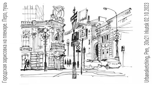 Городская зарисовка на пленэре Перо Тушь 02.10.2023/1 Рисую и рассказываю UrbanSketch Realtimes Pen