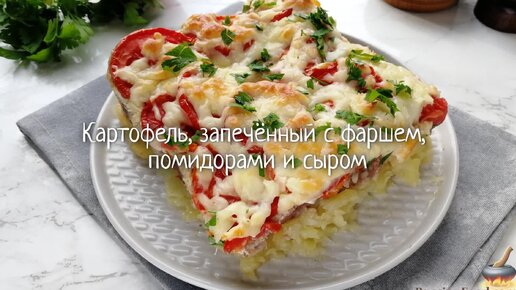 Сочетание привычное, но всегда удачное! Картофель, запечённый с фаршем, помидорами и сыром