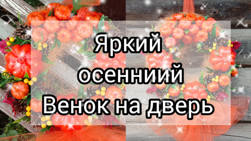 Яркий осенний декор. Венок на дверь с тыквами. #поделки #осенниеподелки #венокнадверь