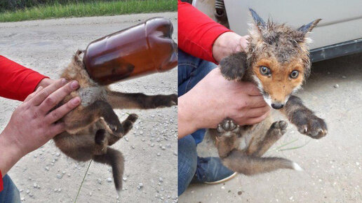 Спасение лисёнка от мусора