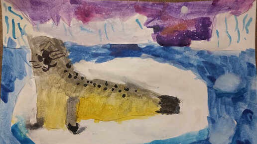 Тюлень. Рисует ребенок 4 года.