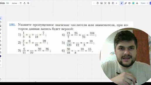 Сокращение ДРОБЕЙ - 6 класс. Укажите пропущенное значение числителя или знаменателя. ГДЗ Мерзляк № 191