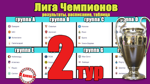 Лига Чемпионов. 2 тур. Таблица. Результаты. Расписание. Провал МЮ.