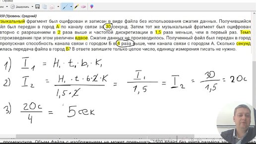 Замечательная задача на скорость передачи звукового файла (№ 359, уровень: Средний, сайт А. Кабанова) - решаем аналитически, без изысков