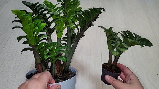 Как из маленького замиокулькаса получают большой куст, показываю на примере