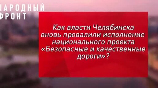 "ОНФ": власти Челябинска провалили нацпроект «Безопасные и качественные дороги» (04.10.2023)