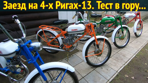 За рулём четырёх мопедов Рига-13. Тестируем в горку на тягу.