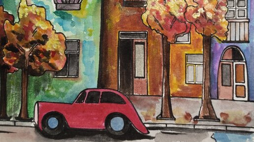 Рисую акварелью и линнером веселые дома в технике "скетчинг"