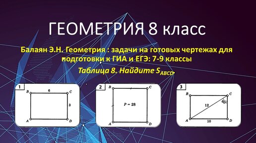 Геометрия 8 класс_Ищем площадь прямоугольника в задачах 1-3 на готовых чертежах