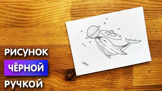 Рисунок черной ручкой "Кит" для начинающих | Милые и легкие картинки для детей и взрослых