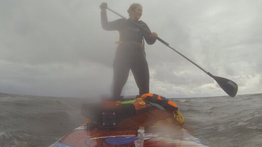 Фрагменты даунвинда с Кронштадта в Сестрорецк на сапе при ветре 9.5 м/с (отрезок между фортами Обручев и Тотлебен). Дождик, волны.