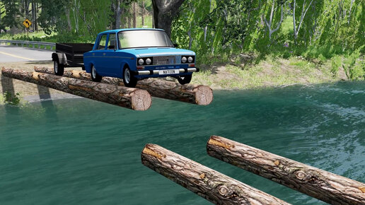 Автомобили против недостроенного бревенчатого моста #1 - реалистичный симулятор аварии Бименджи Драйв игра на пк. BeamNG drive game.