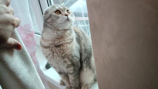 Соня нашкодила и сбежала на подоконник