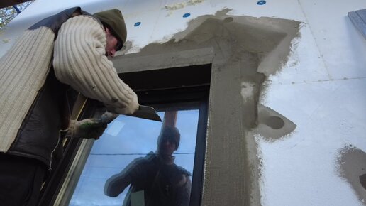Базовый армирующий слой на оконных откосах. Диагональные и внутренние косынки, элементы примыкания и уголки с сеткой клей Baumit ProContact