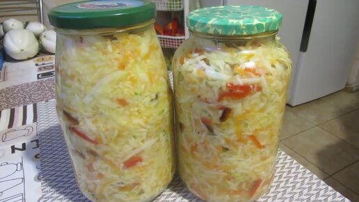 Зимний салат с капустой в банке без варки и воды.