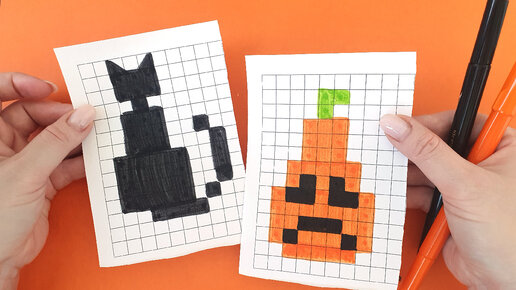 Что нарисовать на Хэллоуин. Рисунки по клеточкам