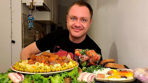 МУКБАНГ. ОБЖОР. ГУЛЯШ ПО-СОВДЕПОВСКИ ИЗ ГОВЯДИНЫ С МАКАРОХАМИ, САЛАТ, ЯИЧНИЦА НА САЛЕ, АСМР. КОММЕНТЫ.