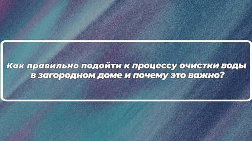 Как правильно подойти к процессу очистки воды и почему это важно