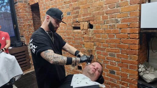 Брутальный барбер Ваня с классными татухами! Красиво побрил, качественно помассировал.
