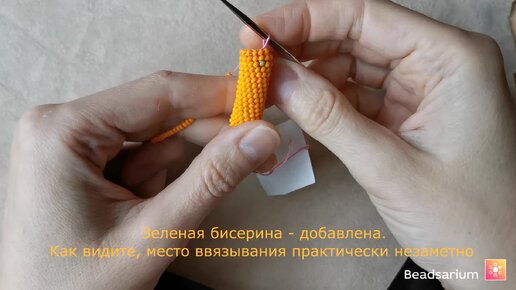 Вязание жгута столбиком: как добавить бисерину, не отрезая нить