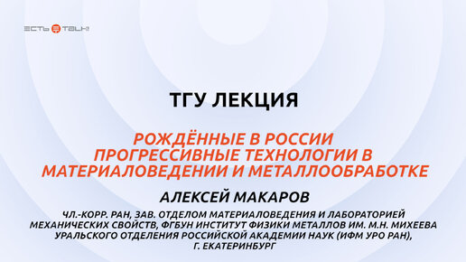 ТГУ ЛЕКЦИЯ: Рожденные в России прогрессивные технологии в материаловедении и металлообработке
