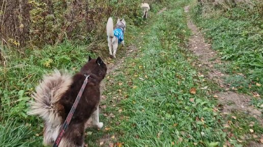 Прогулка со стаей. Слепая Нота без поводка прекрасно справляется!
