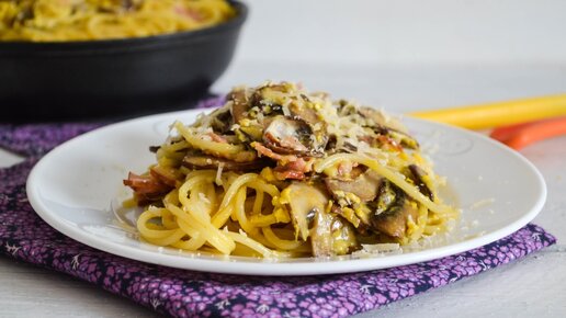Паста Карбонара с беконом, грибами и сливками, рецепт классического итальянского блюда