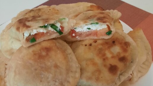Вкусный завтрак. Нужны лишь помидор, творог, зелёный лук и мука. Все быстро и все сыты. Вкусная закуска или перекус