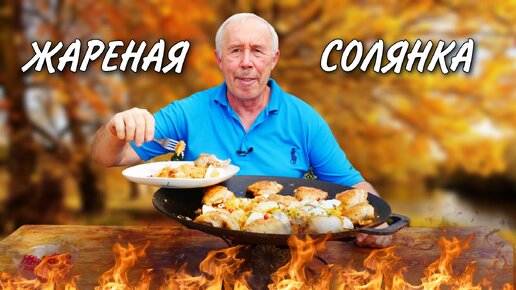 ВКУСНЯТИНА НАША из ВЕКА в ВЕК ЖАРЕНАЯ СОЛЯНКА с КУРИНЫМИ БЕДРЫШКАМИ в СКОВОРОДЕ на КОСТРЕ