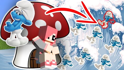 ЦУНАМИ ИЗ СМУРФИКОВ ПРОТИВ ДОМА ИЗ ГРИБА В МАЙНКРАФТ