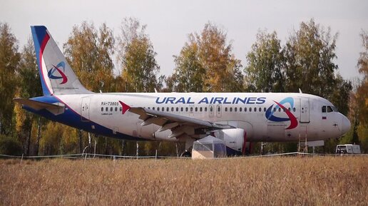 Самолет сел в поле. Новосибирская область. Уральские авиалинии.
