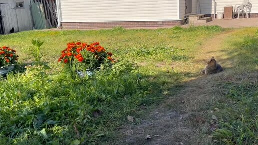 😺Мася нежится на солнышке😺Осень, солнце и незваные гости в саду. Октябрь 2023