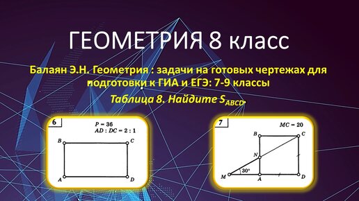 Геометрия 8 класс. Ищем площадь прямоугольника в задачах 6, 7 на готовых чертежах