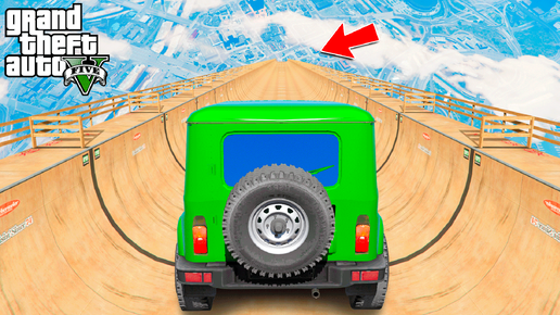 СПУСК БЕЗ ТОРМОЗОВ по МЕГА ТРАМПЛИНУ на УАЗИКЕ в ГТА 5 МОДЫ - ЭКСПЕРИМЕНТЫ в GTA 5