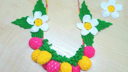 Детские бусы крючком, ягодные бусы, Малиновые бусы крючком, слинго - бусы ягодки крючком