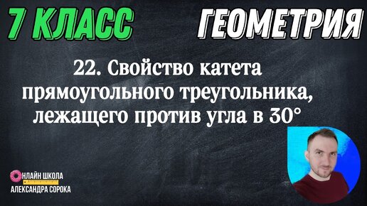 Урок 22. Свойство катета прямоугольного треугольника, лежащего против угла в 30° (7 класс)