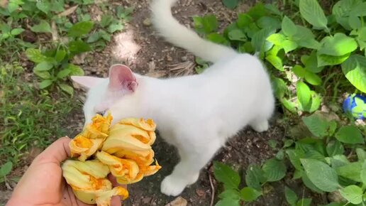 Котенок и цветы тыквы