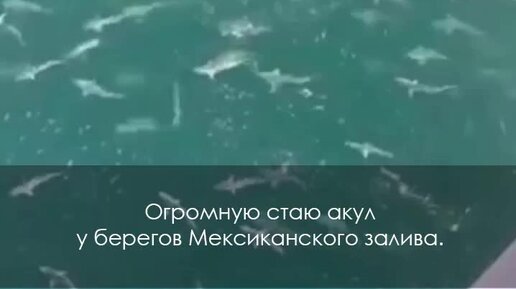 Внушительная по размерам стая акул у берегов Мексиканского залива. Кадры опубликовали сотрудники нефтедобывающей платформы.