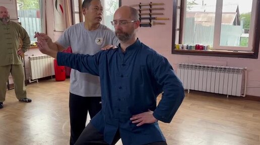Шифу Чэнь Цзыцзюнь правит движение "Лениво подвязать одежду" (lǎnzāyī, 懒扎衣).